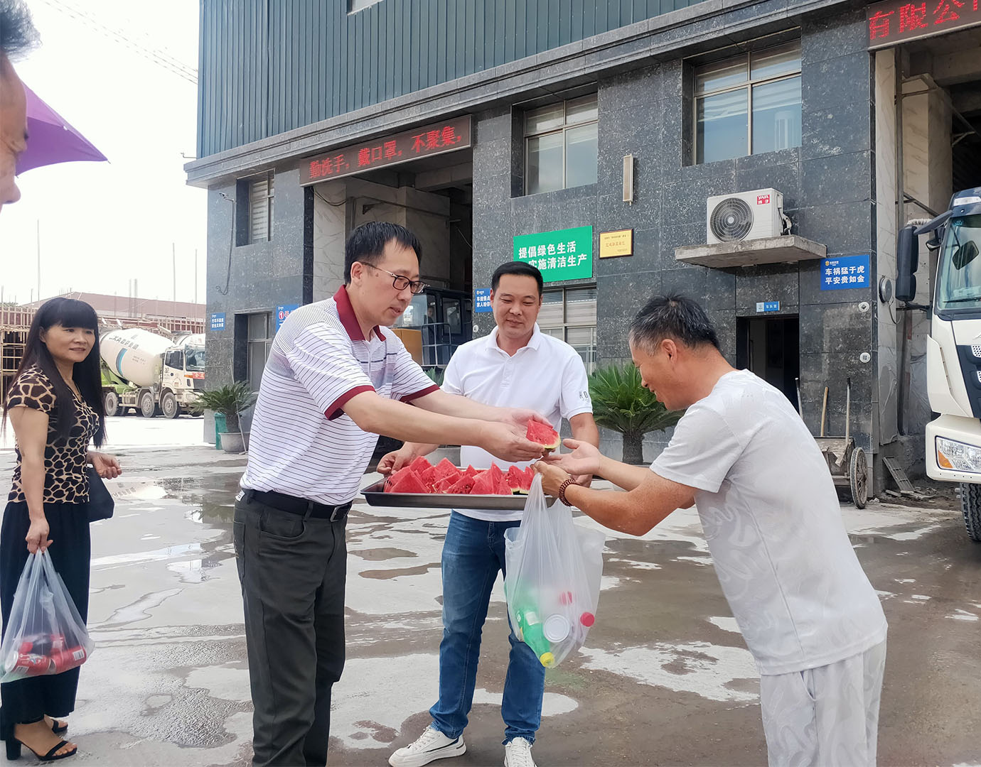 活動中,領(lǐng)導(dǎo)們親臨生產(chǎn)一線,把清涼物資送到員工手中,把關(guān)懷慰問送到了員工的心坎,向員工的辛勤付出和默默奉獻(xiàn)表示了感謝和敬意。員工們激動地接過一瓶瓶飲料、一塊塊西瓜,露出了發(fā)自心底的笑容。傅融總裁關(guān)切地叮囑大家在保證安全生產(chǎn)的同時,還要注意自己身體健康,防止高溫中暑。工會主席邵建根強(qiáng)調(diào),各分工會要切實落實好防暑降溫措施,備齊防暑物資,科學(xué)合理地安排作息時間,適當(dāng)避開高溫時段作業(yè),把員工的人身安全放在第一位。