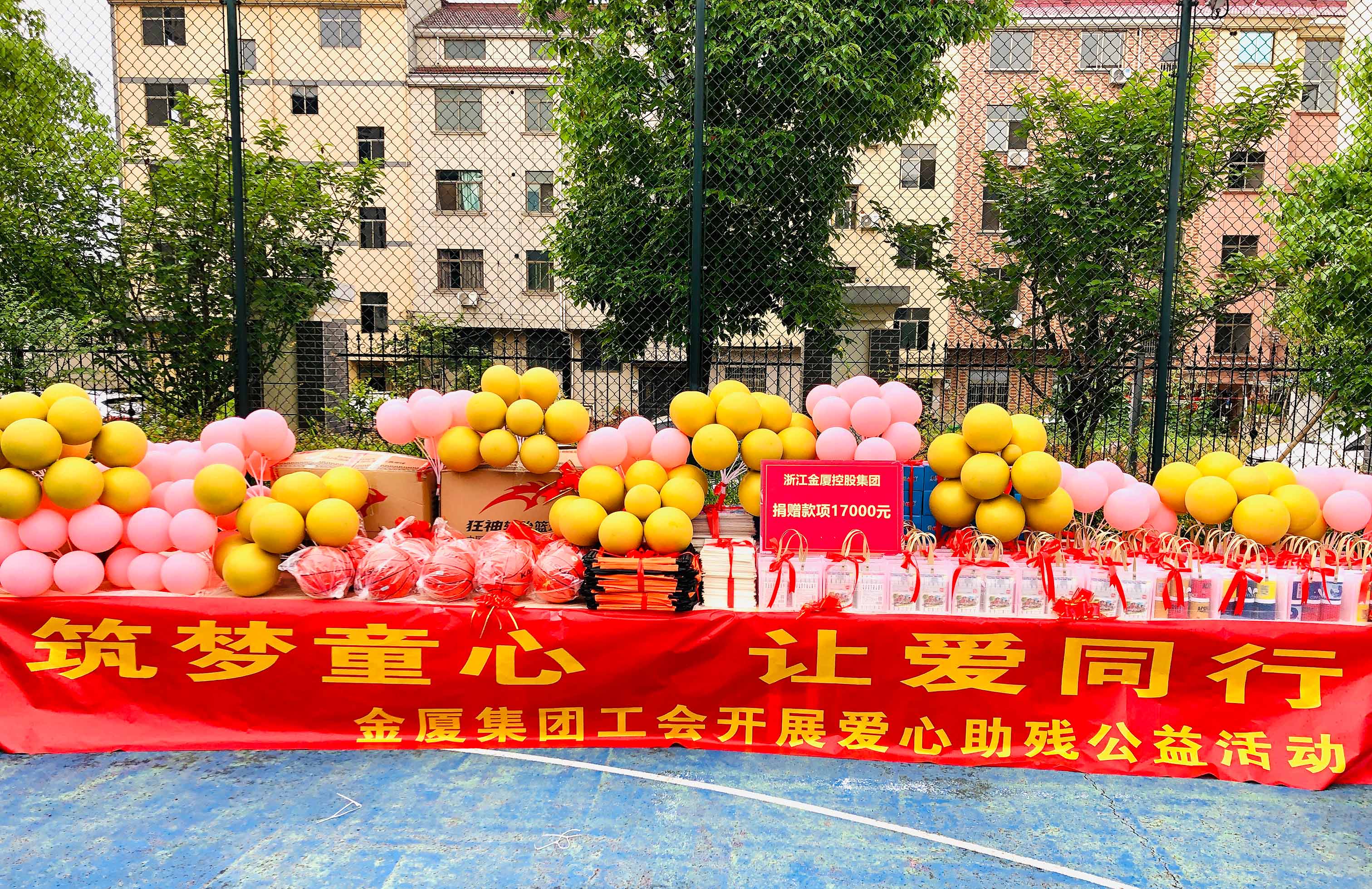 為弘揚中華民族扶弱助殘的傳統美德,給特殊兒童家庭送去溫暖和信心,在第34個全國“助殘日”到來之際, 5月30日上午,金華市政協委員、金廈集團董事長蔣晨虹率隊走進市殘聯幼兒特教中心開展愛心助殘公益活動,為這里的康復孩子們捐贈慰問金及愛心物資,并送上節日的美好祝福。金華市殘聯黨組成員、副理事長周志強,金華市婦聯辦公室副主任江麗,金華市殘疾人康復托養指導中心主任陳偉,金東區殘聯副理事長杜建平,金東區紅十字會代表陳麗莉等領導參加活動。