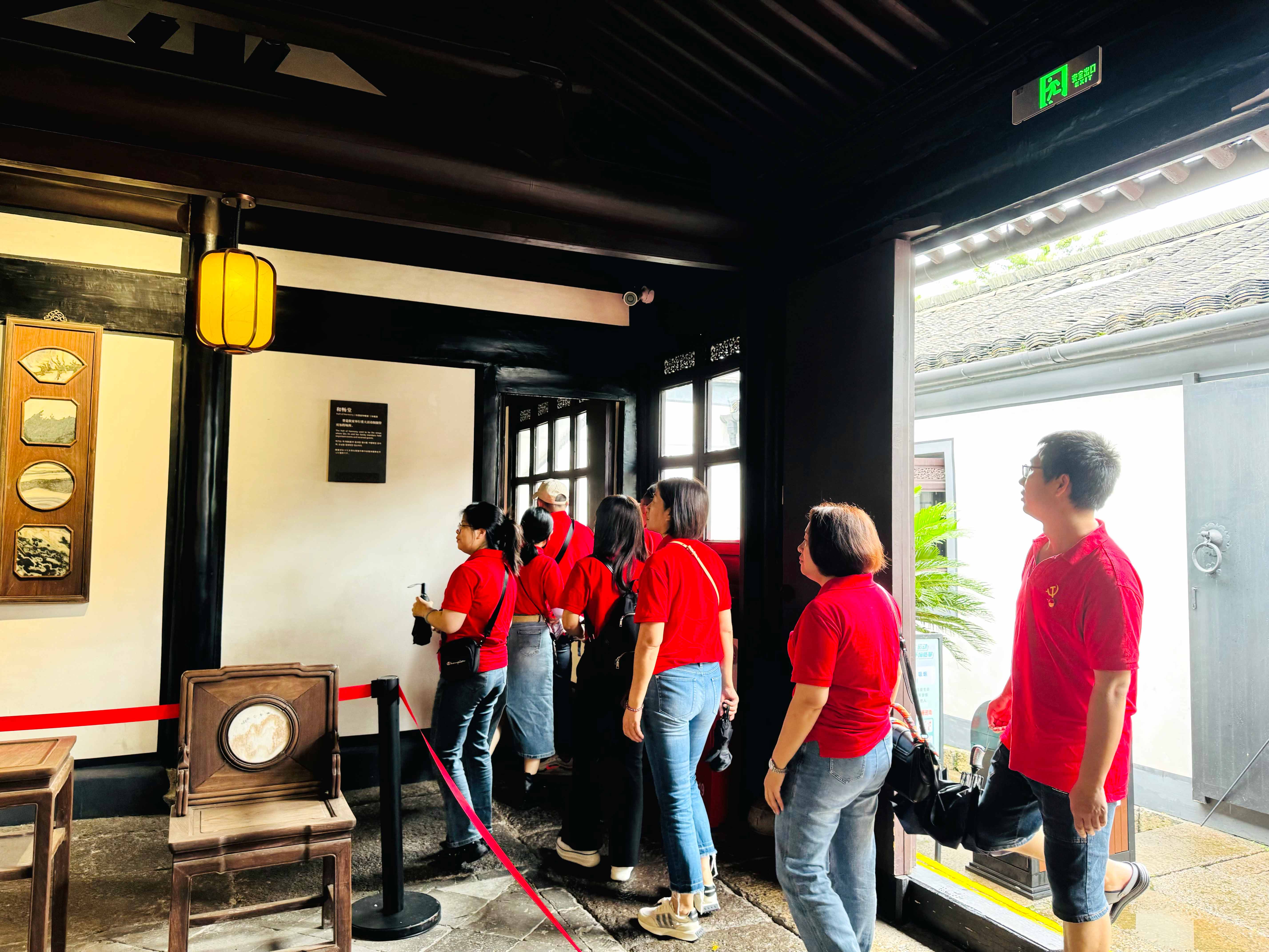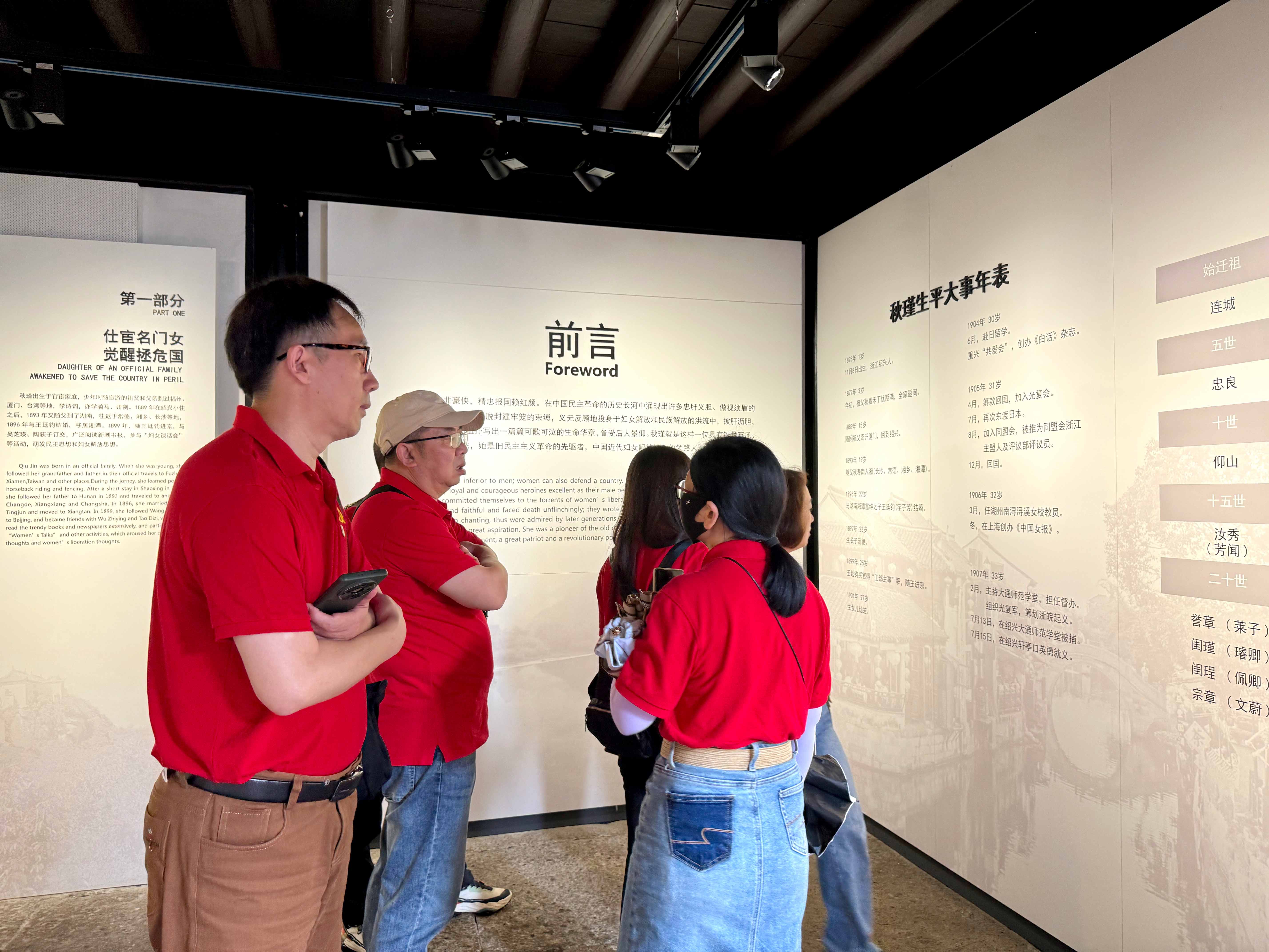 金廈團隊一路奔赴,抵達紹興后第一時間來到了位于越城區的秋瑾故居。這是一座充滿歷史沉淀的古樸建筑,這里曾經是秋瑾出生成長的地方,也是她投身革命事業的起點。故居內陳列著大量關于秋瑾從事革命事業的圖片和文獻資料,大家認真參觀展館,在歷史的回聲中感受秋瑾這位偉大女性短暫而輝煌的人生軌跡。