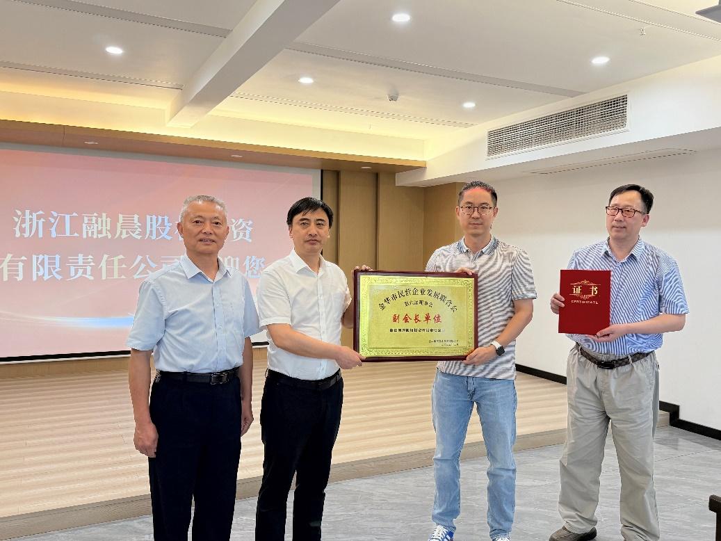 7月4日下午,金華市市場監督管理局副局長陳紅南,市民營企業發展聯合會理事長詹曉明等領導一行蒞臨金廈集團走訪調研,并向集團旗下子公司浙江融晨股權投資有限責任公司授牌“金華市民營企業發展聯合會第六屆理事會副會長單位”。