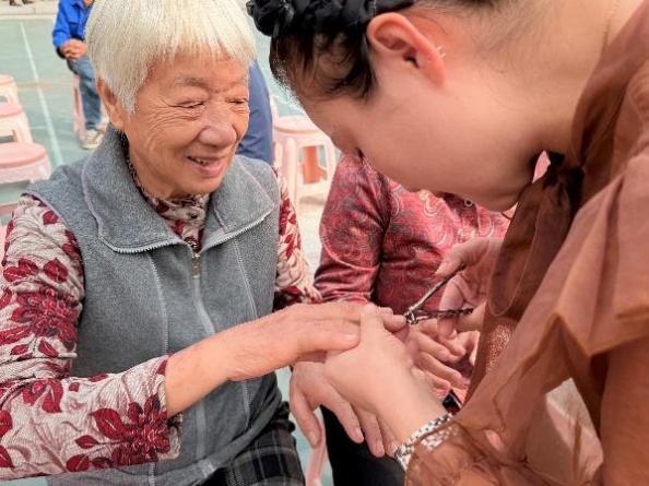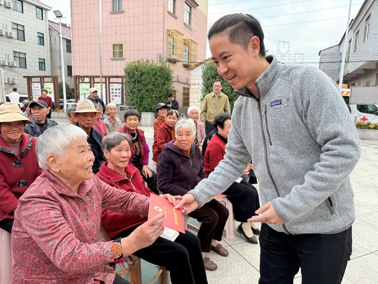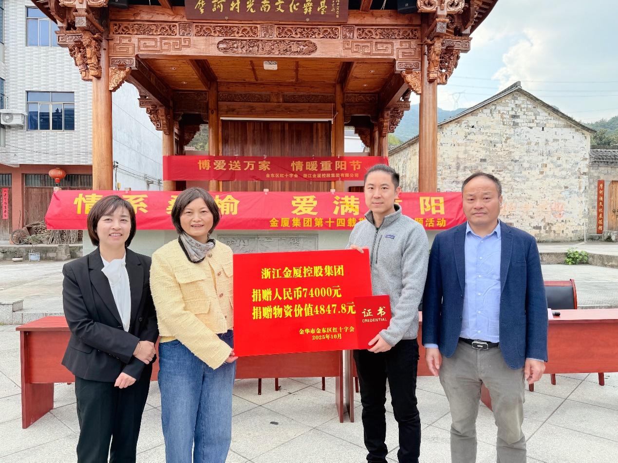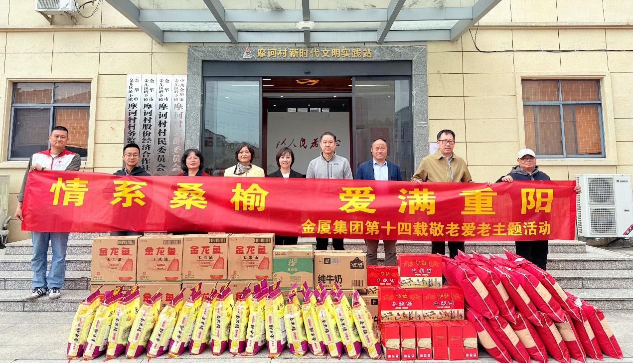 村里的文化舞臺下,紅底黃字的“重陽慰問”橫幅早早就掛了起來;辦公樓前,一袋袋米油面碼得整整齊齊;志愿者們忙忙碌碌穿梭其間,熟絡地給老人們剪指甲、梳頭發、嘮家常——10月27日上午,金東區嶺下鎮摩訶村文化廣場上,洋溢著濃濃的節日氛圍。在2025年重陽節來臨之際,金廈集團總裁傅融率集團高層再次走進摩訶村,帶著心意,赴這場持續了14年的“敬老之約”。